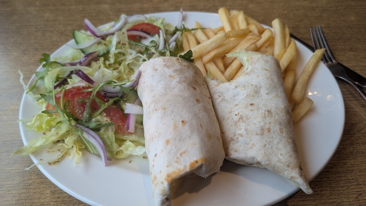 The atmosphere is straightforward and clean, with a practical feel that caters largely to lorry drivers, workers, and anyone needing a no-fuss stop. Visitors tend to drop in for substantial breakfasts—like the English Breakfast—or something lighter but fresh, such as a halloumi wrap or a crisp Greek salad. The menu covers the basics well, offering everything from jacket potatoes with various toppings to grilled chicken and several wrap options, including falafel or pesto chicken. Coffee, particularly the cappuccino and Americano, is a staple here, complementing the meals perfectly and delivered in a casual, welcoming environment.